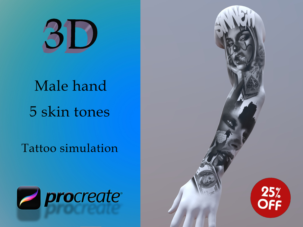 High Quality Procreate 3D Male hand for tattoo simulation | Procreate Tattoo model | 3D woman | Tattoo flash | Procreate stamps